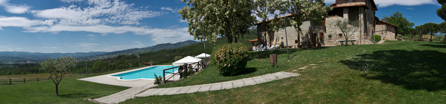 Nehmen Sie die Autobahn A 1 und verlassen Sie in Firenze Sud die Autobahn, um dann der SS 70 Richtung Pontassieve zu fahren (Richtung Consuma-Pass). Fahren Sie dann erst Richtung Poppi und dann Richtung Bibbiena. In Bibbiena fahren Sie auf der SS 208 Richtung Krankenhaus (ospedale), nach 7 km finden Sie in einer großen Linkskurve auf der linken Seite unser großes Eingangstor.